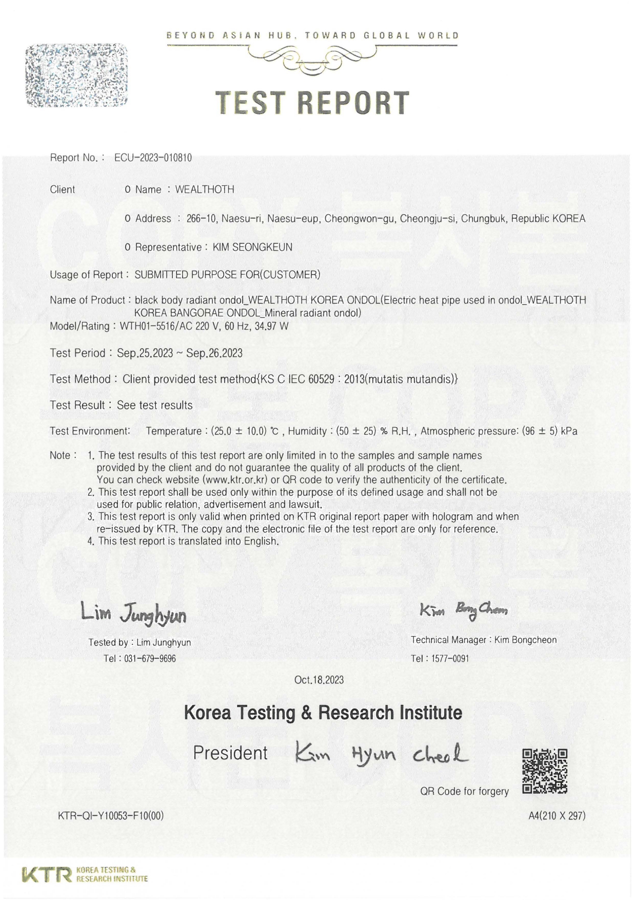 WEALTHOTH KOREA ONDOL_CASS test, leakage current test, and withstand voltage test