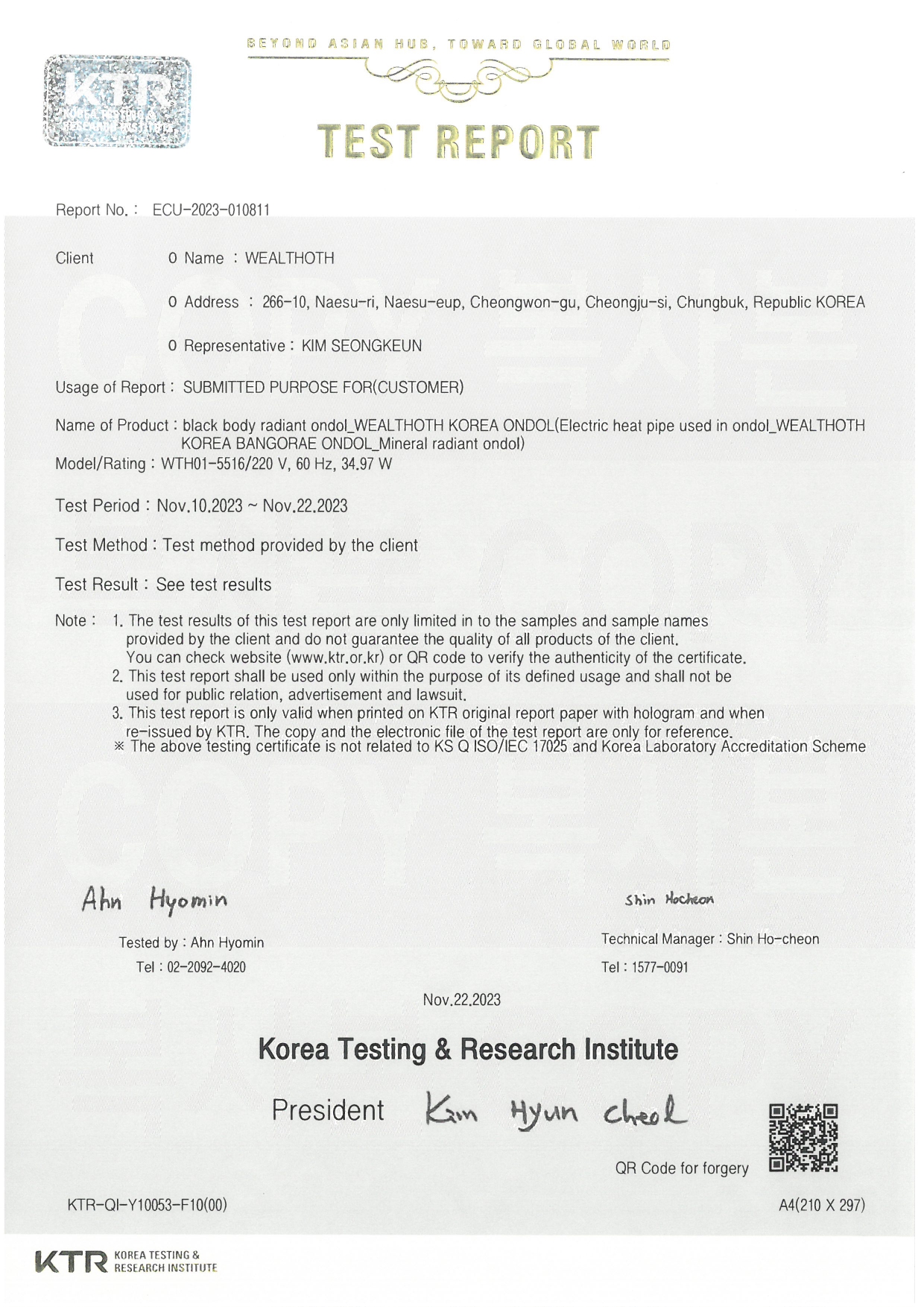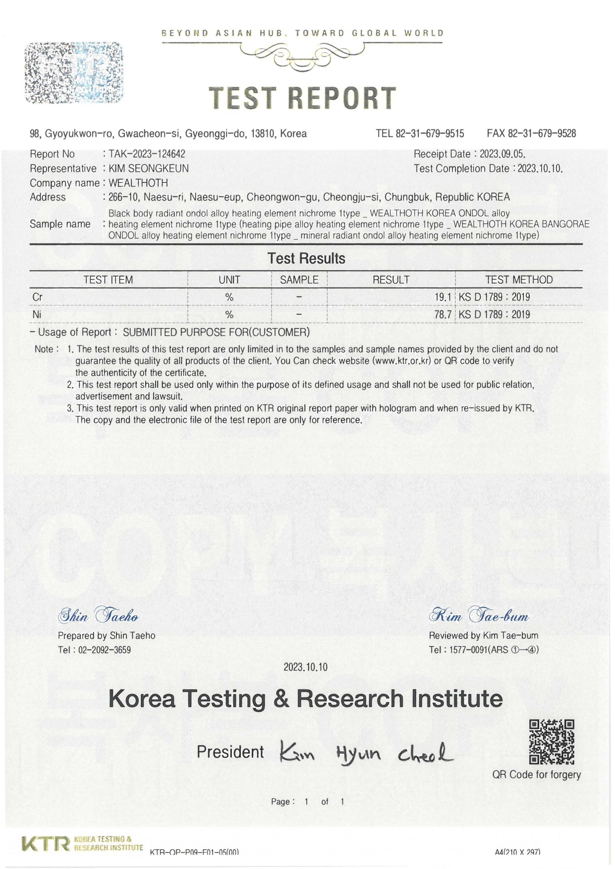 WEALTHOTH KOREA ONDOL alloy heating element_TAK-2023-124642