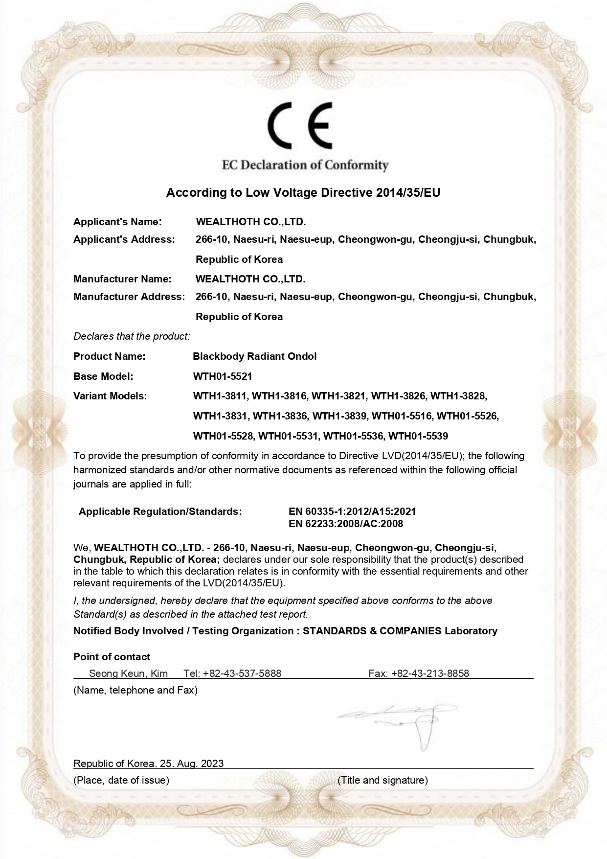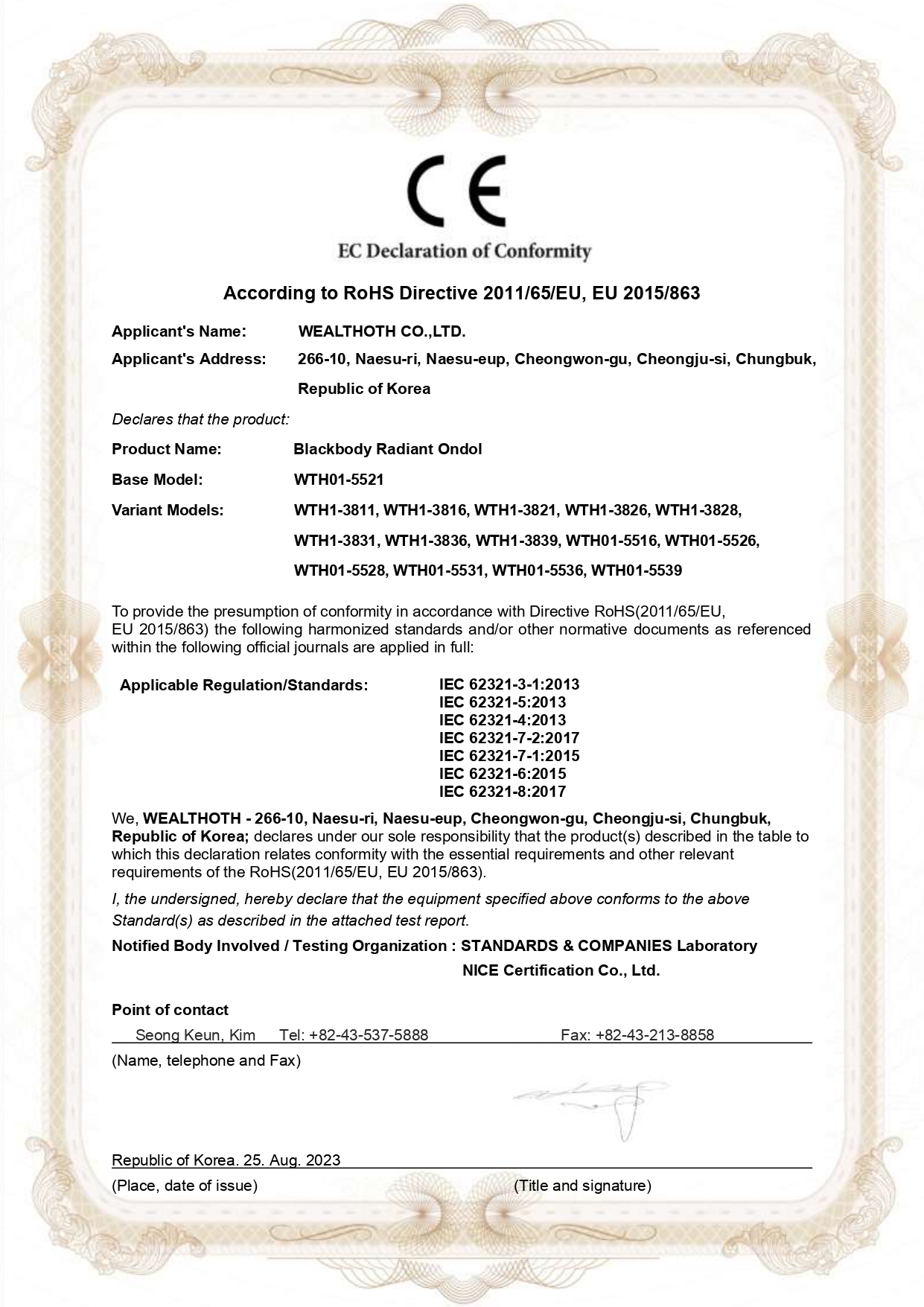 CE_DoC(RoHS)_WEALTHOTH CO.,LTD._Blackbody Radiant Ondol_[Model No. WTH01-5521]