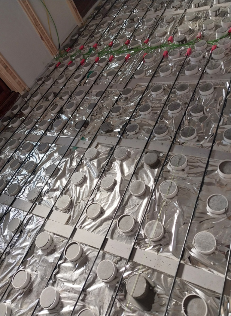 However, this method does not reclaim radiant media like before, which does not require autoclaved lightweight concrete and cement mortar deposit, and eliminates power consumption during production and CO2 generation caused by cement used in construction sites, reducing greenhouse gas.
